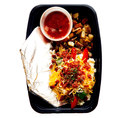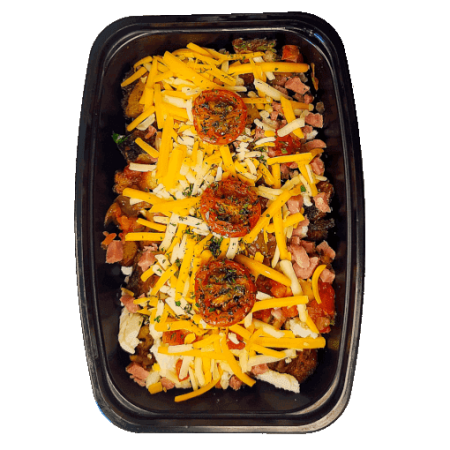 Our hearty Loaded Breakfast Bowl is a celebration of Southern comfort and classic breakfast elements, all in one satisfying bowl. At the heart of this bowl is seasoned potatoes, chicken and turkey sausage, cheddar jack cheese, egg whites, turkey bacon, and chives. Rise and shine with this hearty delight!