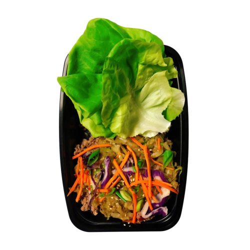 Lean ground beef tossed in our Korean sauce with a side of broccoli, Brussel sprouts, and lettuce wraps