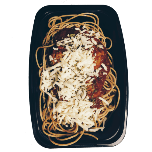 Ingredients: chicken breast, whole grain pasta, marinara sauce, low fat mozzarella cheese, Italian seasoning, garlic, onion powder, basil, thyme, oregano.