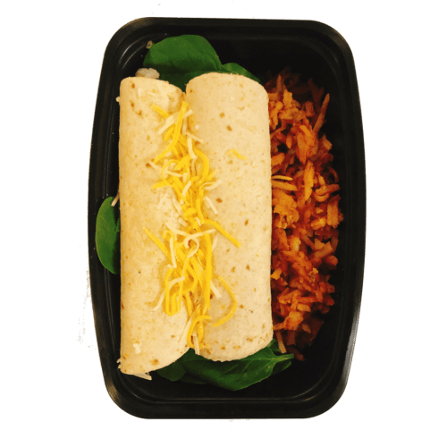 Need we say more? A delicious breakfast whole wheat burrito made with egg whites, cheddar jack, chorizo sausage, and a side of fire roasted salsa.