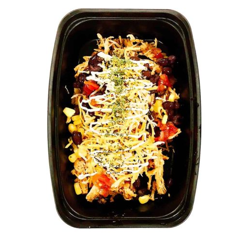 Our Chicken Taco Bowl is the perfect way to satisfy your taco cravings while savoring the convenience of a bowl-style meal. It features seasoned and shredded chicken breast over a bed of brown rice, black beans, corn, cheddar jack and Pico de Gallo, topped with low fat sour cream and fresh cilantro. This taco bowl is so tasty you won’t even miss the taco shell.