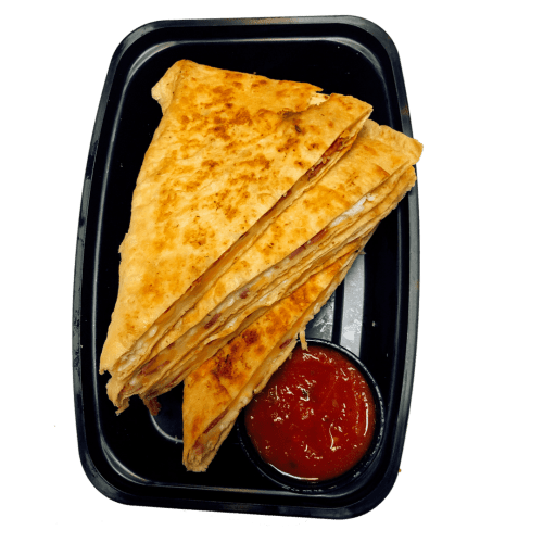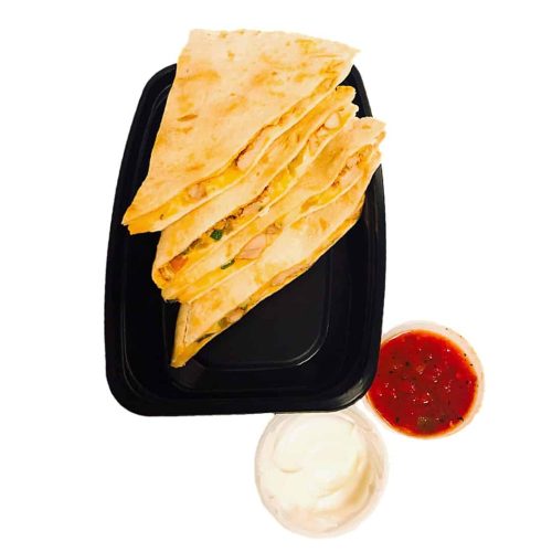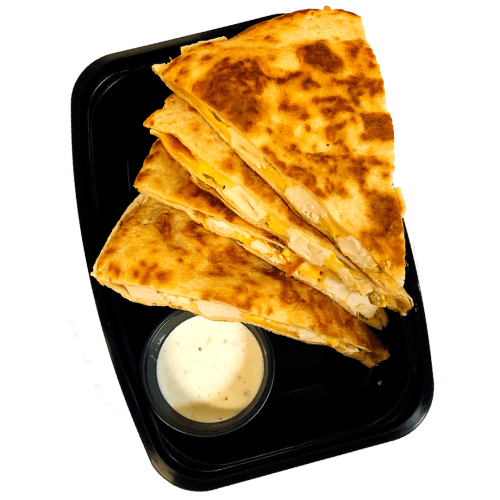 Chicken breast diced and packed into a quesadilla with pickled jalapeños and cheddar jack cheese dipped into low-fat ranch.