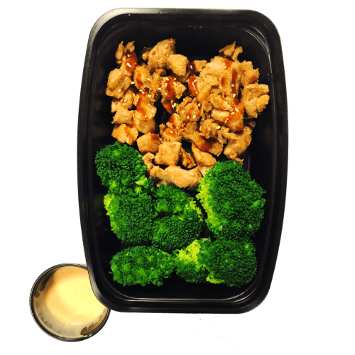 Chicken thighs sautéed in sesame sauce paired with broccoli & a side of yum yum sauce