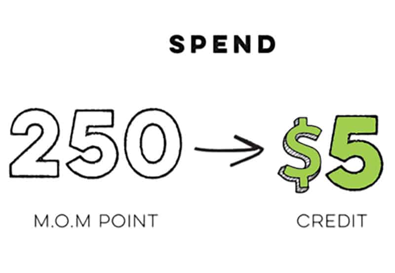 For every dollar you spend, you get a mom point. These points accumulate and turn into “M.O.M cash. You can use this credit in your checkout.