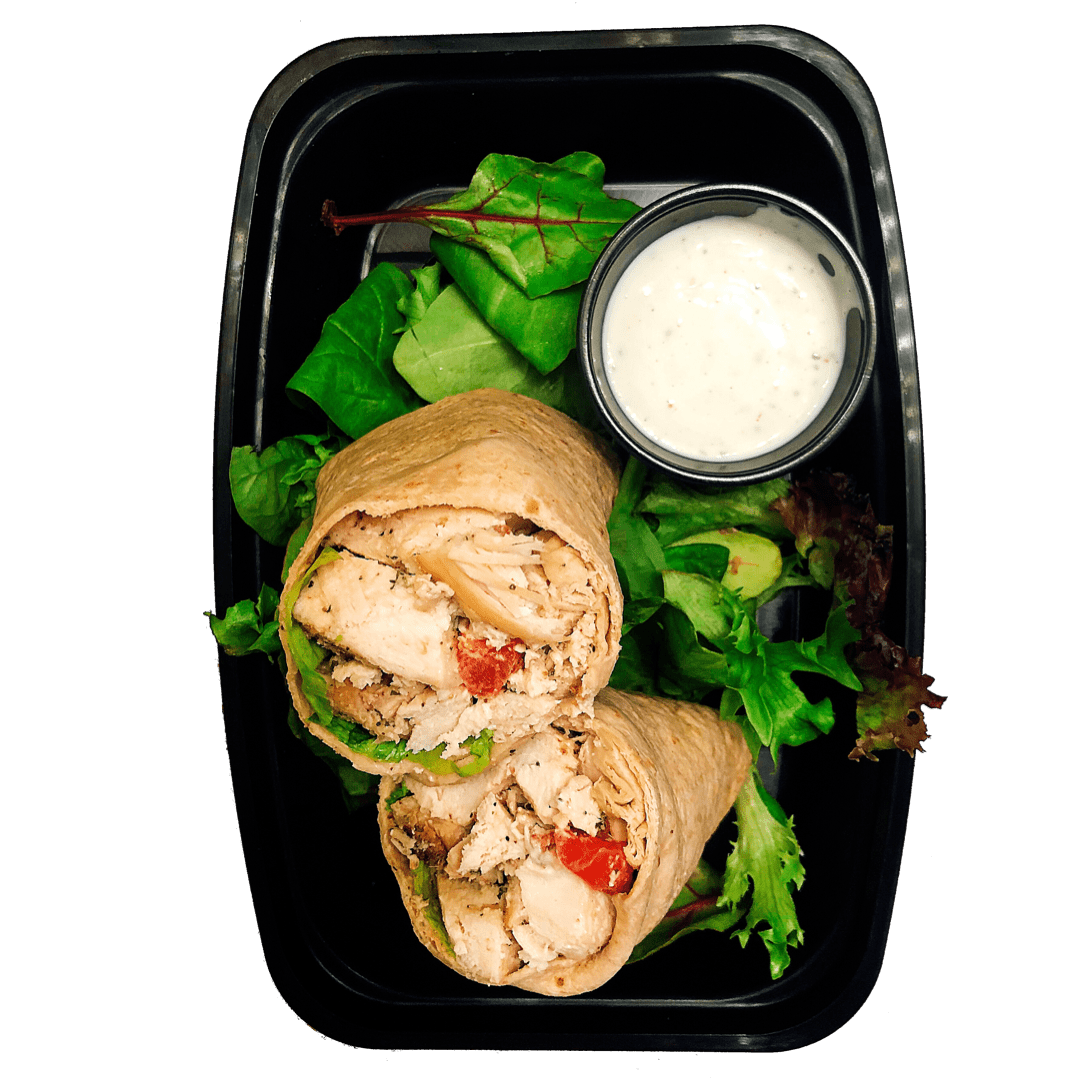 Ingredients: Chicken breast, whole wheat tortilla, turkey bacon, Roma tomatoes, cheddar jack, low fat ranch