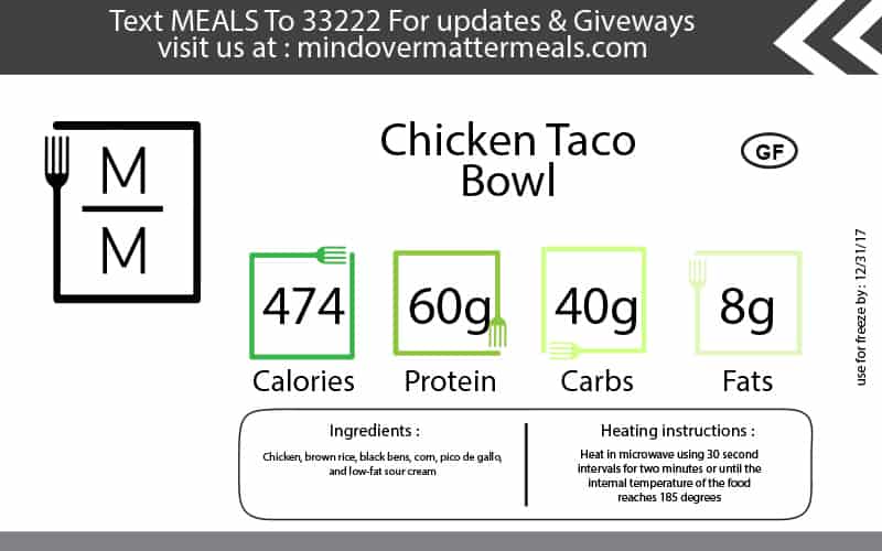 Our Chicken Taco Bowl is the perfect way to satisfy your taco cravings while savoring the convenience of a bowl-style meal. It features seasoned and shredded chicken breast over a bed of brown rice, black beans, corn, cheddar jack and Pico de Gallo, topped with low fat sour cream and fresh cilantro. This taco bowl is so tasty you won’t even miss the taco shell.