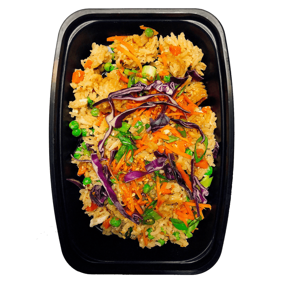 Jasmine rice mixed with vegetables and egg whites made crispy with our flat tops. Topped with cabbage, green onion and sprinkled with sesame seeds.